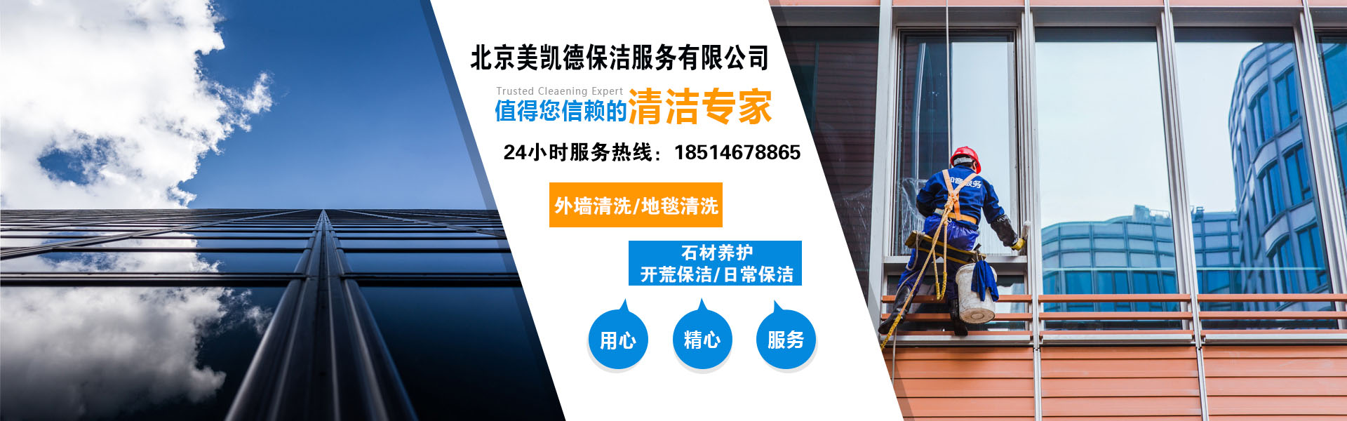 北京美凱德保潔服務(wù)有限公司是北京一家大型、專業(yè)的保潔服務(wù)公司,北京樓宇外墻清洗服務(wù)商,21年保潔專業(yè)服務(wù)經(jīng)驗(yàn),100多家合作單位遍及全市,每年保潔面積300萬(wàn)平米,在此基礎(chǔ)上我公司積累了豐富的經(jīng)驗(yàn)與實(shí)操技術(shù),在同行業(yè)中處于領(lǐng)先地位。